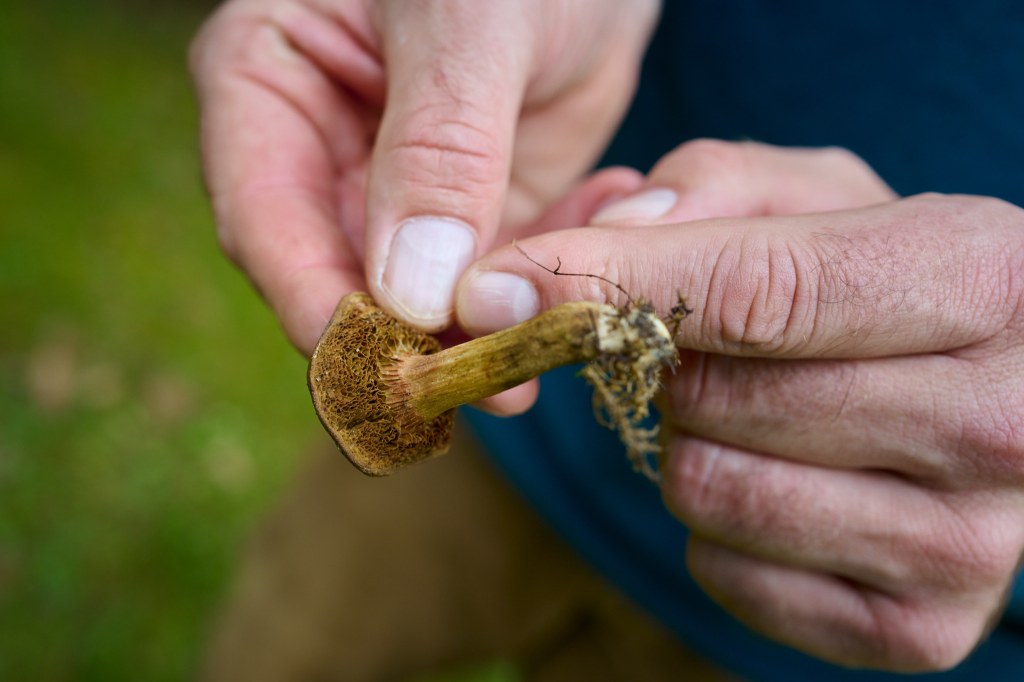 Wir spazieren anderthalb Stunden über das abwechslungsreiche Gelände – und finden wenig. So trösten wir uns mit Pilzplattitüden wie „Es heißt Pilze suchen – und nicht finden.“ und rufen uns in Erinnerung, dass neben mykologischem Kenntnisreichtum buddhistischer Gleichmut die wahrscheinlich wichtigste Eigenschaft ist, die Pilzmenschen mitbringen müssen. Denn es muss so vieles passen: Neben den richtigen Bäumen und der passenden Bodenbeschaffenheit spielen wie erwähnt die klimatischen Verhältnisse eine wichtige Rolle fürs Pilzwachstum. Und natürlich sind da immer auch die anderen Menschen, die gegebenenfalls schneller waren als man selbst. In einer Großstadt soll das vorkommen.