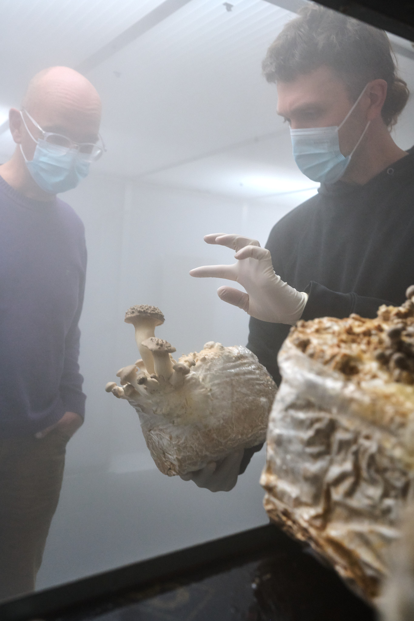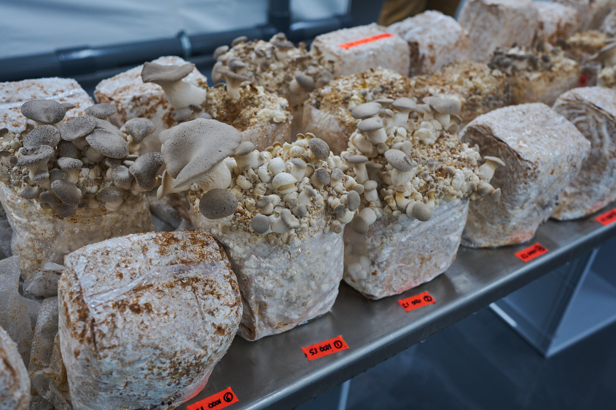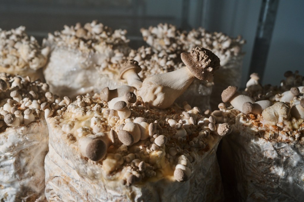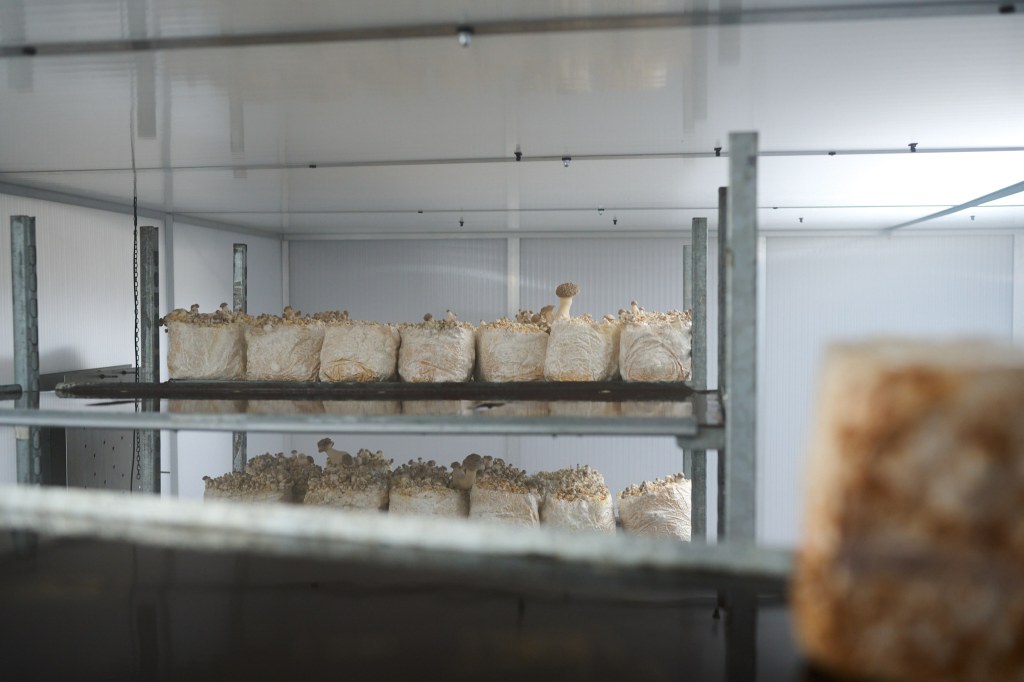 Jeden Freitagnachmittag öffnet die Farm im Eigelsteinviertel ihre Tore zum Pilzverkauf. Ansonsten verkaufen die beiden ihre Produkte vor allem an die Gastronomie. Außerdem haben sie auch „Growkits“ im Angebot, Komplettsets für die Hobby-Pilzzucht daheim. Und weil natürlich immer wieder Restpilze übrig bleiben, haben die Pilzlinge auch daraus etwas Spannendes entwickelt. Seit Anfang November verkaufen sie „Shroom Boom“, eine fermentierte Pilzessenz. Wir durften diese Würzsauce, die sich geschmacklich und von den kulinarischen Verwendungsmöglichkeiten her irgendwo zwischen Fisch- und Worcestersauce einordnet, vorab probieren. Ein Umami-Booster und gleichzeitig ein Stück Wald im Mund. Toll, was Pilze alles können.