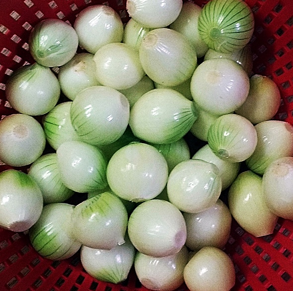 Feldfrüchte wie Kartoffeln und Zwiebeln hat gleiches Schicksal ereilt: Zufriedenstellende Erntemengen gab es hier bei uns nur, hätte man die einzelnen Stücke gezählt. Größe und Gewicht hingegen ließen viele Bauern traurig zurück. Nun hat all dies glücklicherweise nicht unbedingt negative Auswirkungen auf den Geschmack. Zum Beispiel schmeckt die Kartoffelsorte, die allgemein als Bamberger Hörnchen bekannt ist, aber bei Anbau anderswo als im Frankenland nicht so genannt werden darf, 2017 vom besten Biobbauern besser denn je. Und aus den vielen kleinen Zwiebeln lässt sich – zugegeben unter Tränen – doch auch einiges machen. Eine eingelegte Köstlichkeit zum Beispiel.